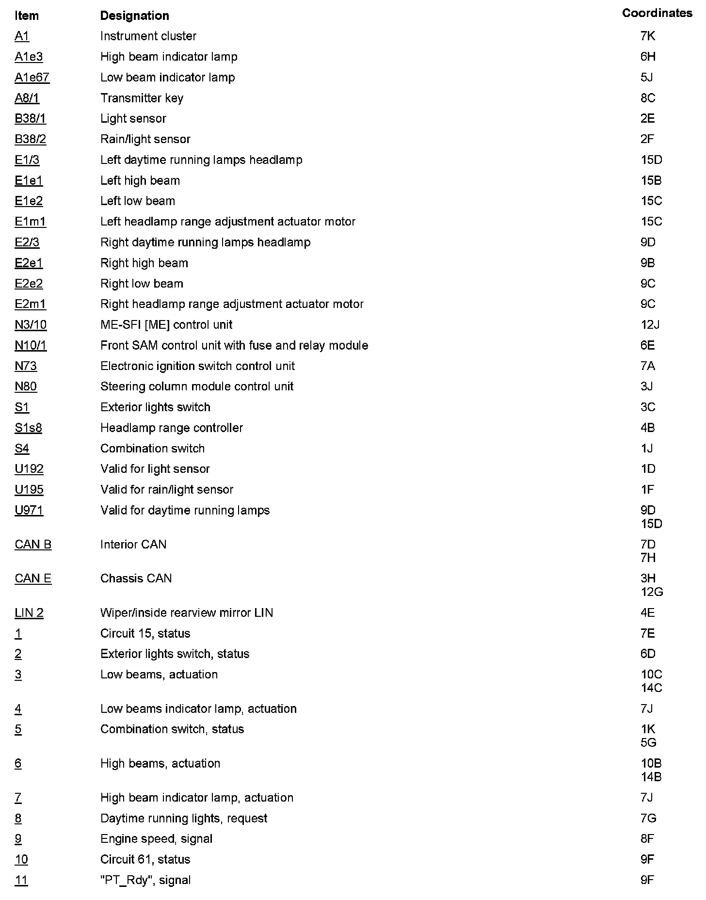 - except CODE (615) Bi-xenon headlamp unit with integrated curve illumination