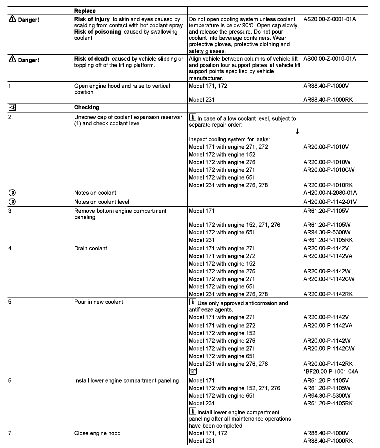 ENGINE 152, 271, 276, 651 in MODEL 172