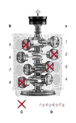 This occurs simultaneously with the intake and exhaust valves for cylinders 2, 3, 5 and 8.