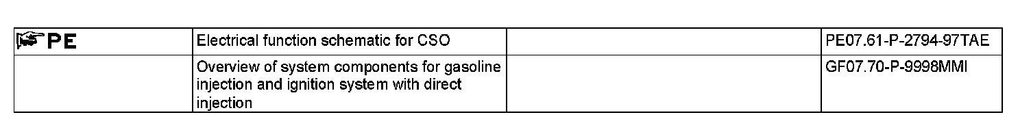 The ME-SFI [ME] control unit reads in the following sensors and signals for CSO: