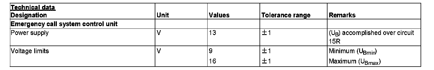 After activation of circuit 15R, the emergency call system control unit performs a self-test (for approx. t = 4 s). If the self-test is successful, the emergency call system is then ready for operation.
