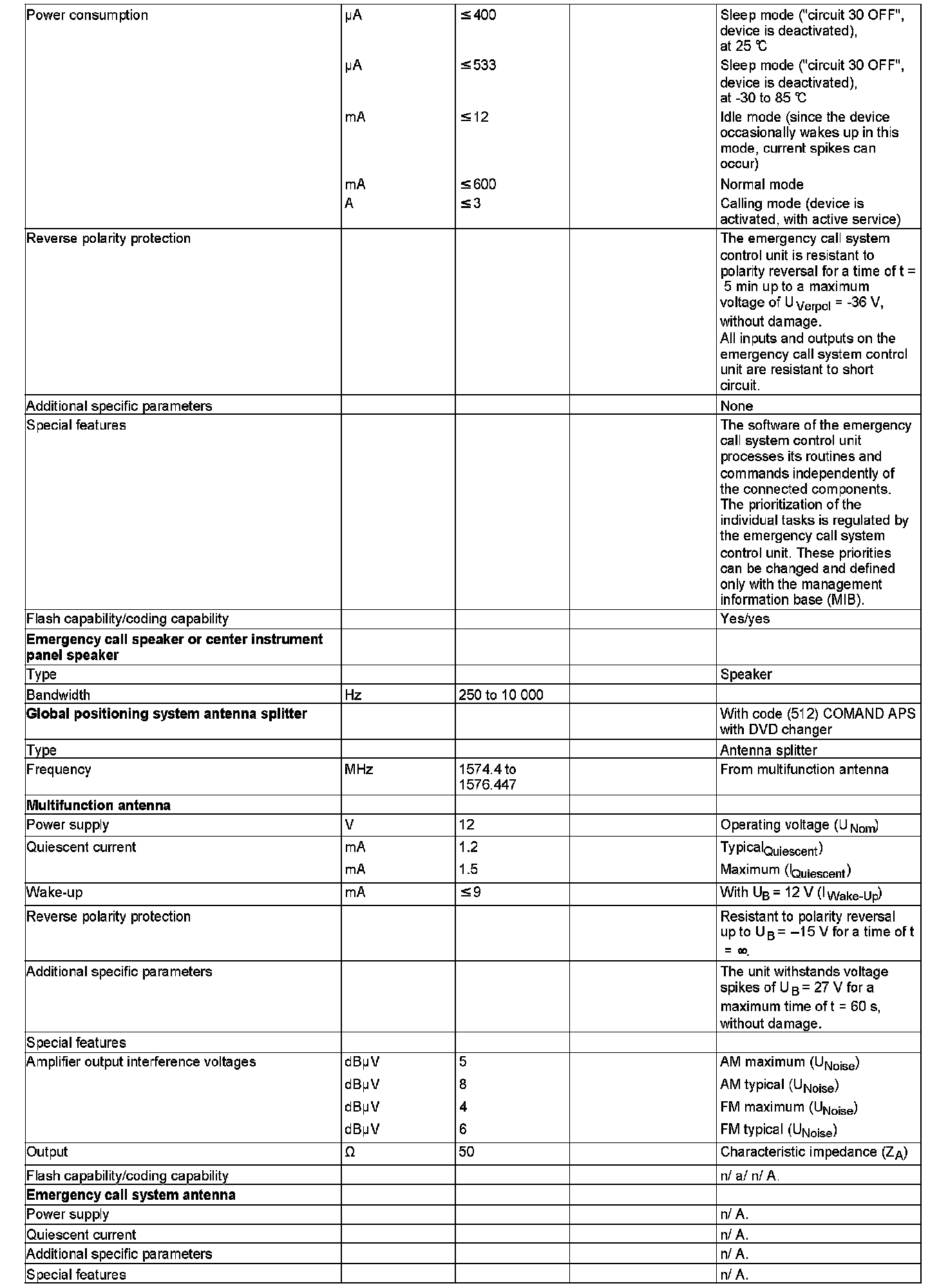 The emergency call system control unit is a diagnostic CAN subscriber (CAN D). The emergency call system control unit receives the following signals via this CAN from the front SAM control unit with fuse and relay module (N10/1):