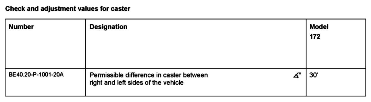 = Caster value 11°06' (±30')