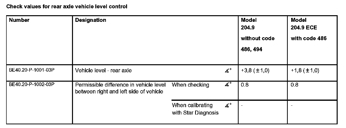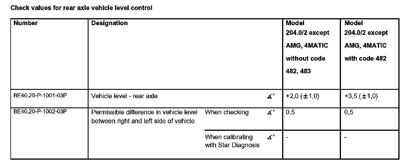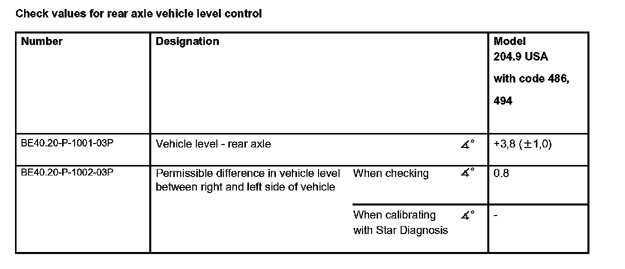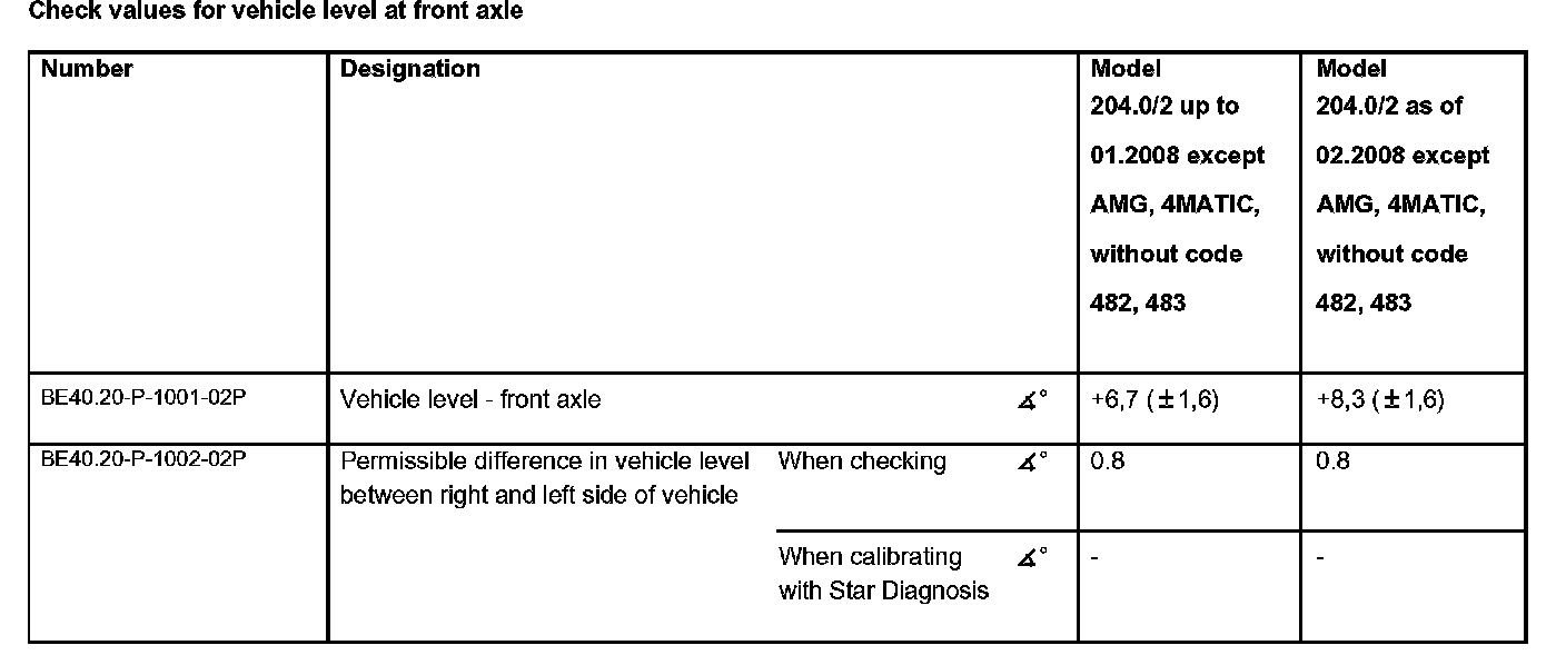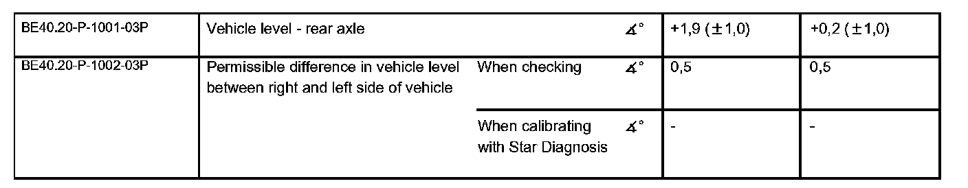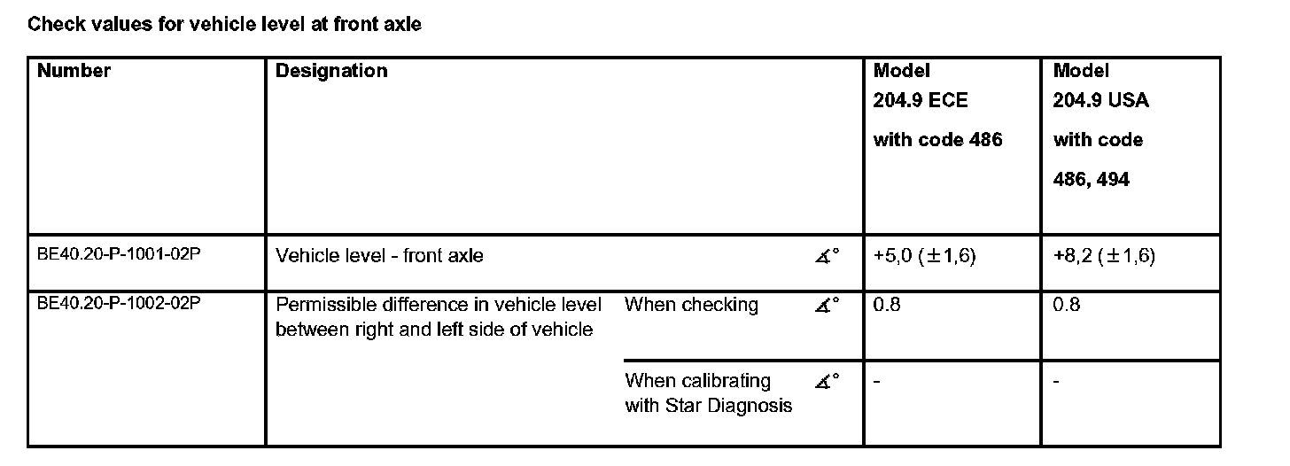 Check values for vehicle level at front axle: