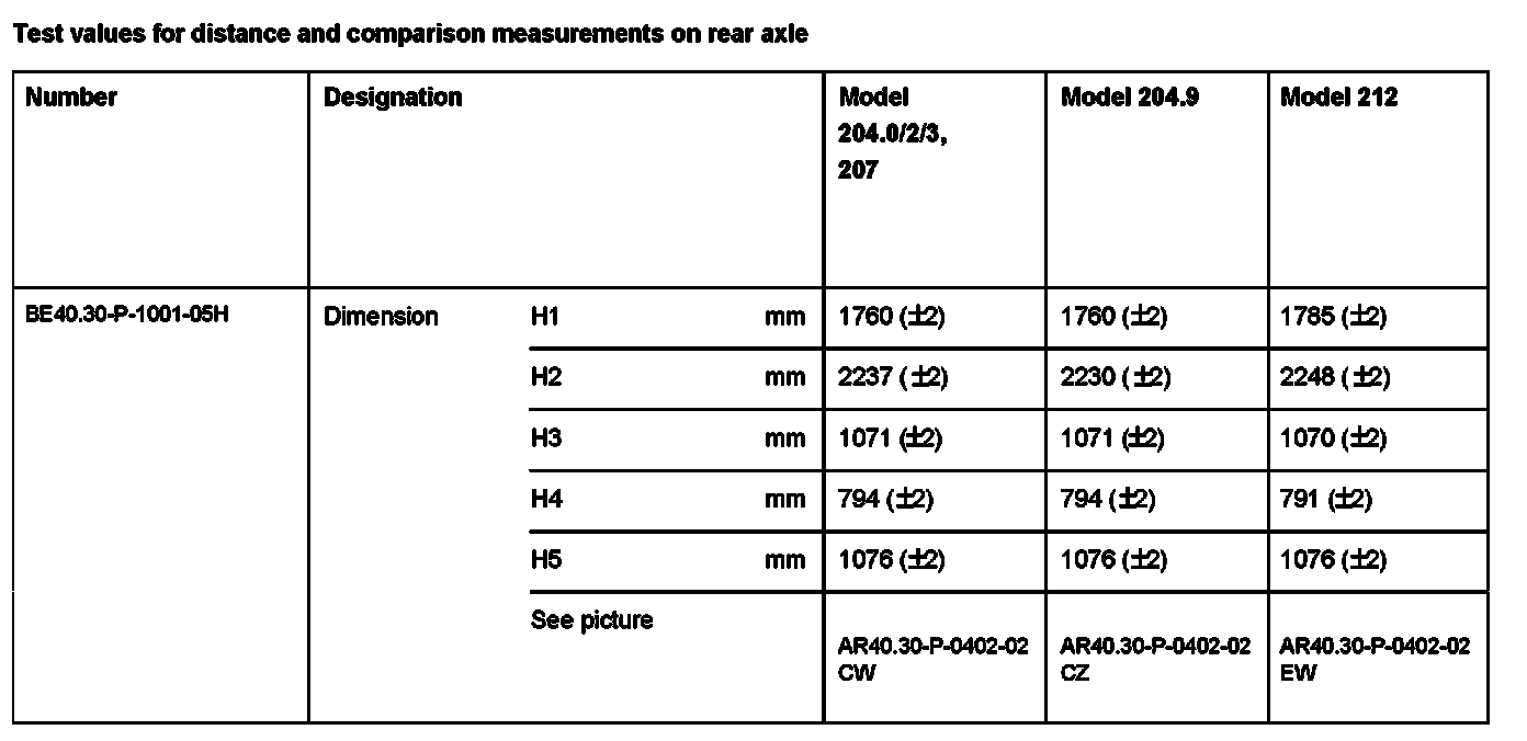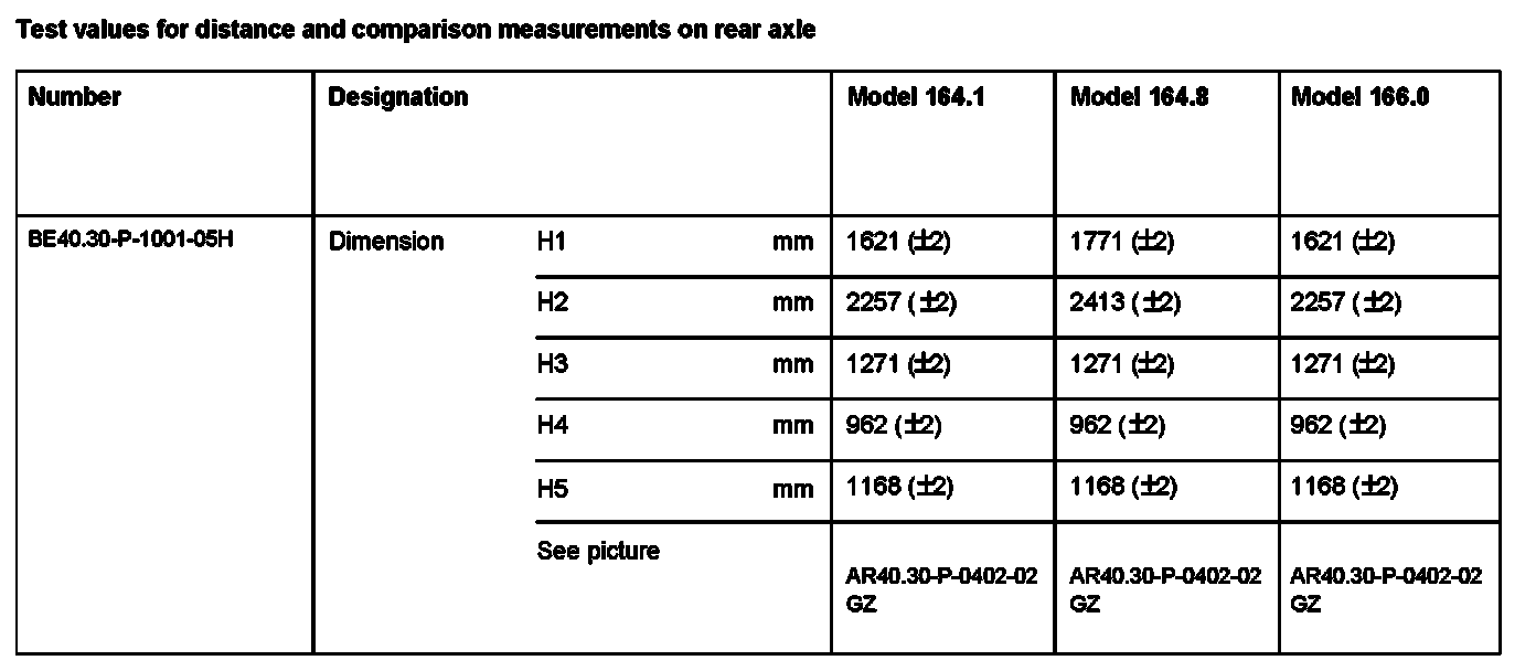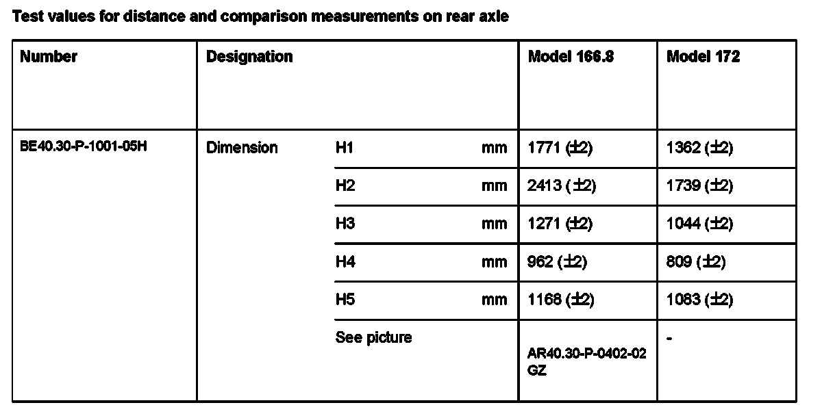 BE40.30-P-1000-05H Test values for distance and comparison measurements on rear axle