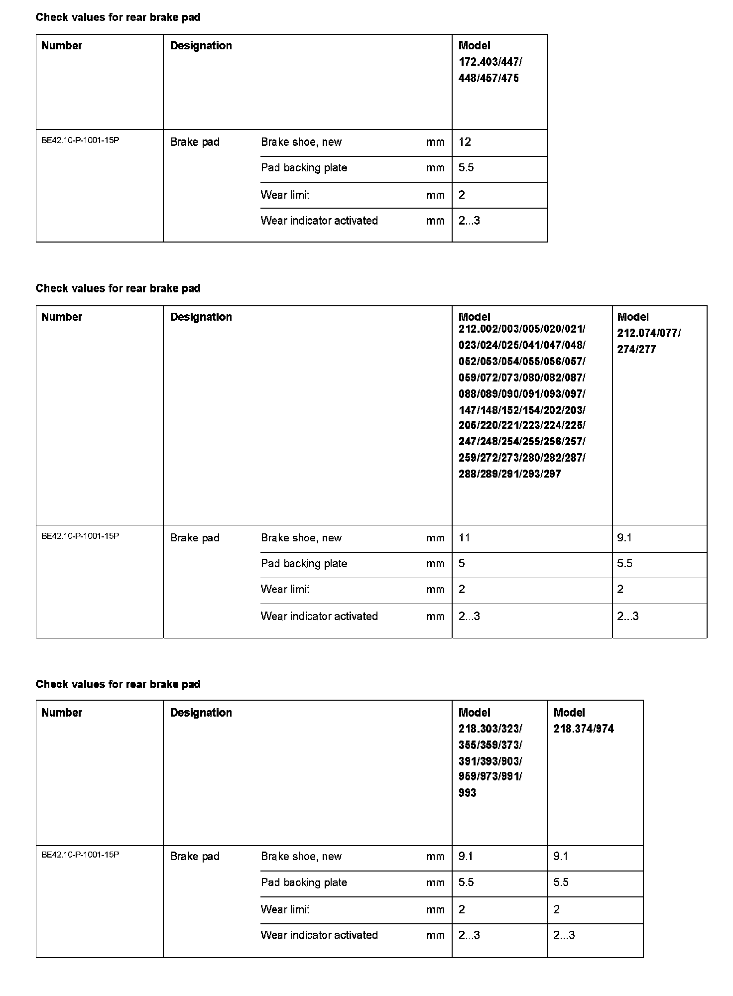 BE42.10-P-1000-15P Check Values For Rear Brake Pad