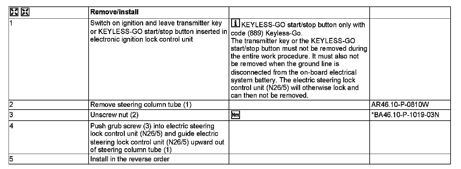 AR46.10-P-0920W Remove/Install Electric Steering Lock (ELV)