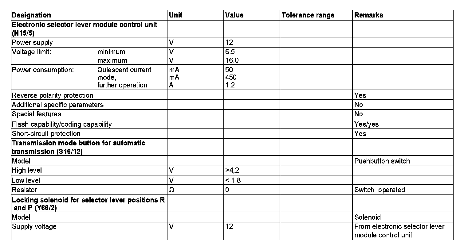 The following input signals are evaluated by the electronic selector lever module control unit and the corresponding output signals issued: