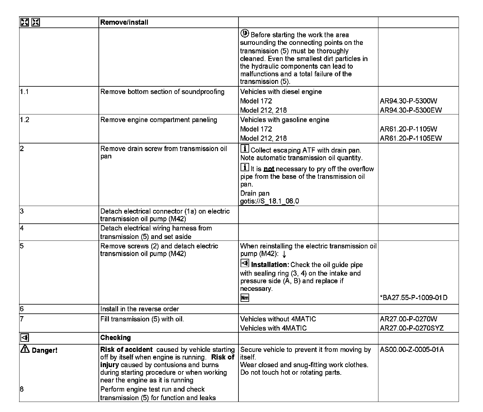 AR27.30-P-0651EL Remove/Install Auxiliary Oil Pump For Automatic Transmission