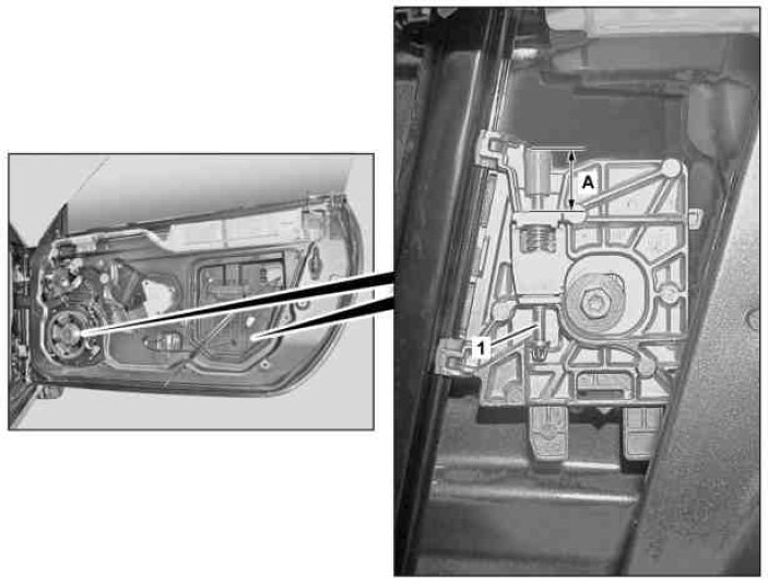 2 Adjust reference dimension (A) by turning and front rear height stop (1).