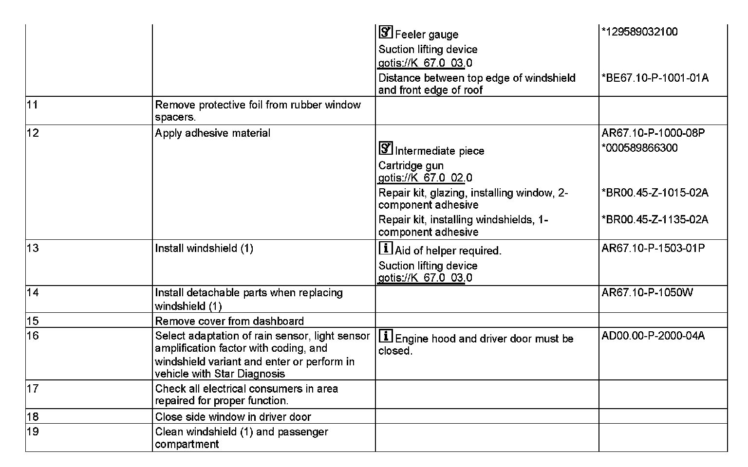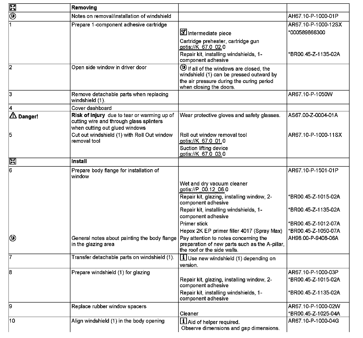 AR67.10-P-1000W Remove/Install Windshield