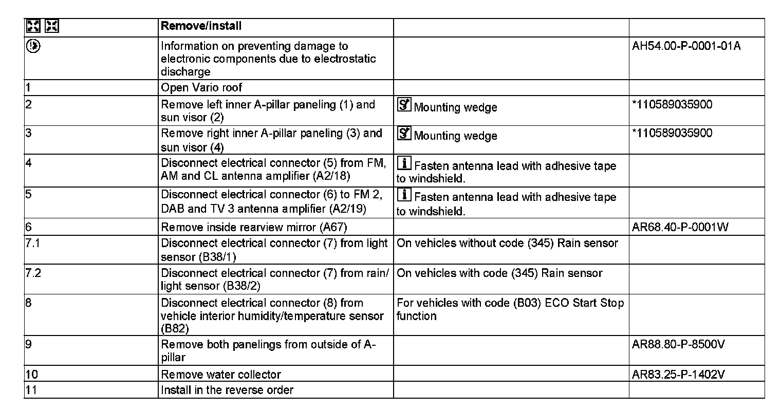 AR67.10-P-1050W Remove/Install Detachable Parts When Replacing Windshield