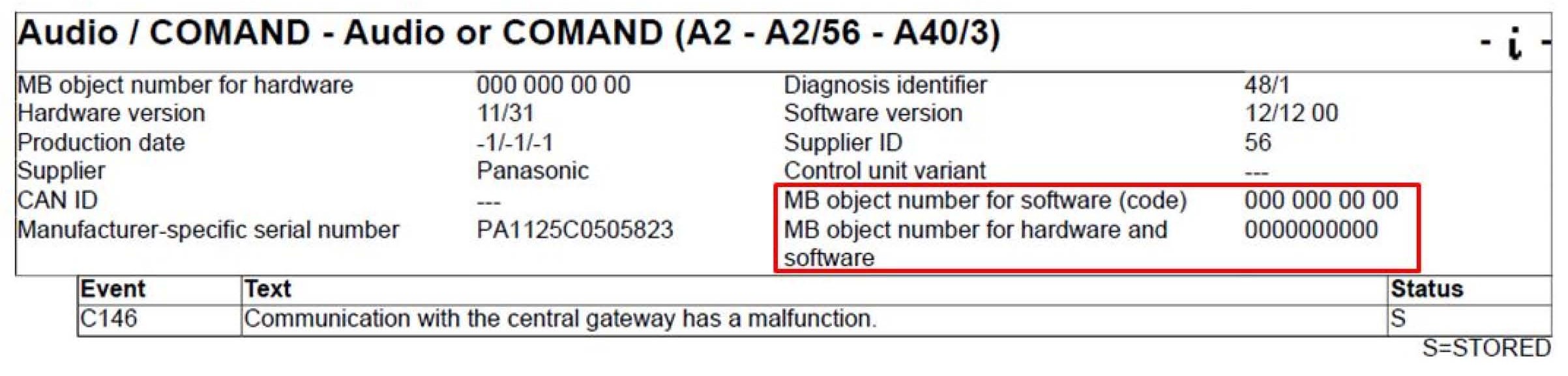 This software release is available as of XENTRY telematics CD 01/2013.
