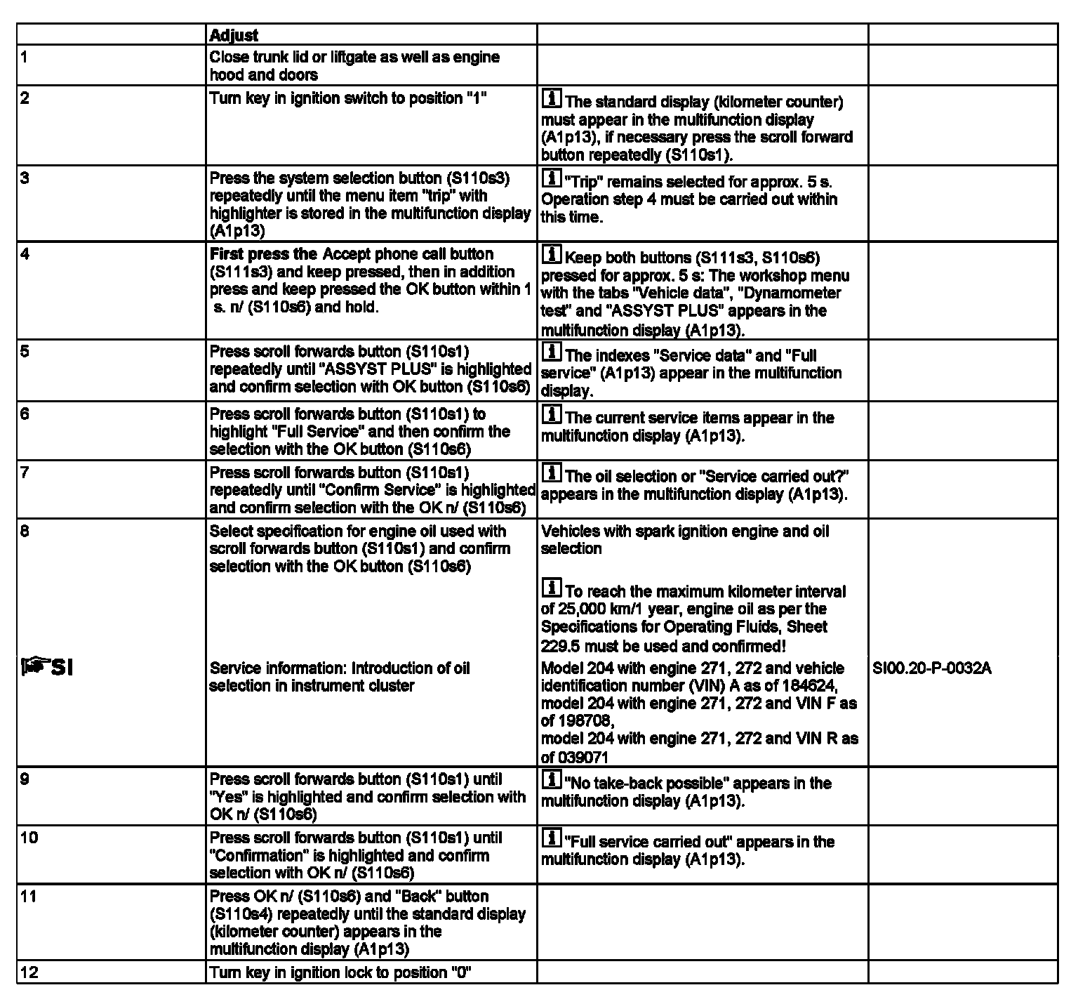AP00.20-P-0042CV Reset Service Indicator [Serv. A - H] 12 Button S/Wheel