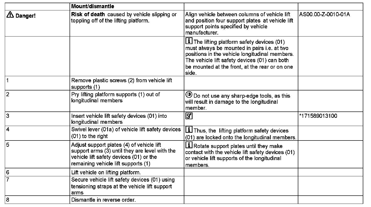 171 589 01 31 00, Vehicle lift safety device