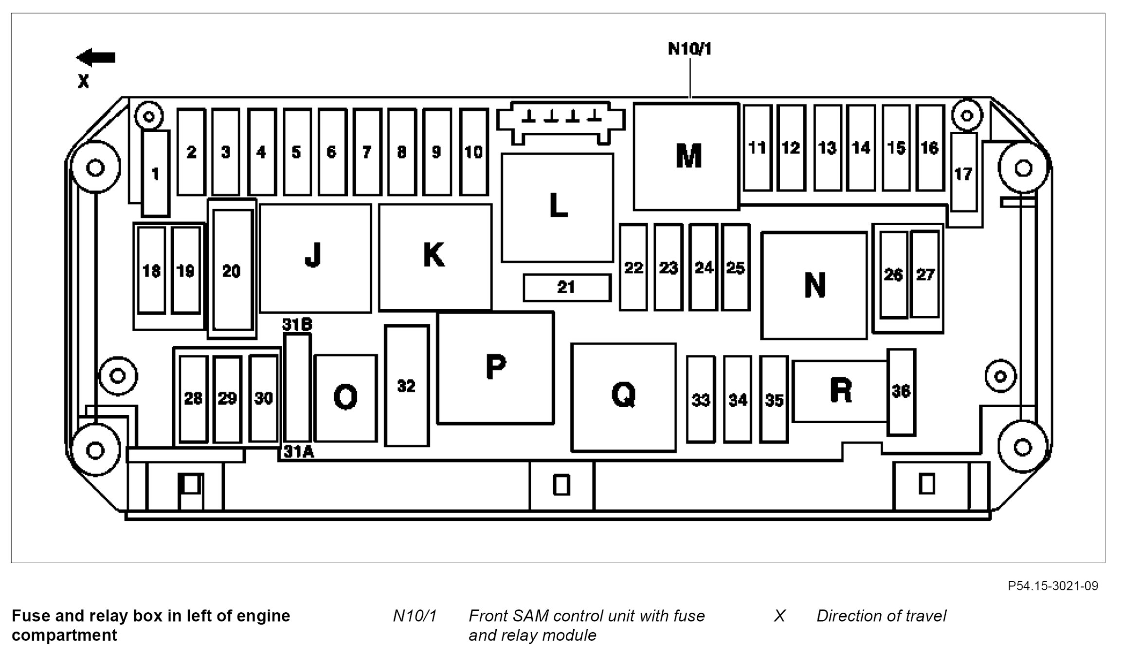 GF54.15-P-1257-03CE Relay Assignment Of Fuse And Relay Box In Left Side Of Engine Compartment