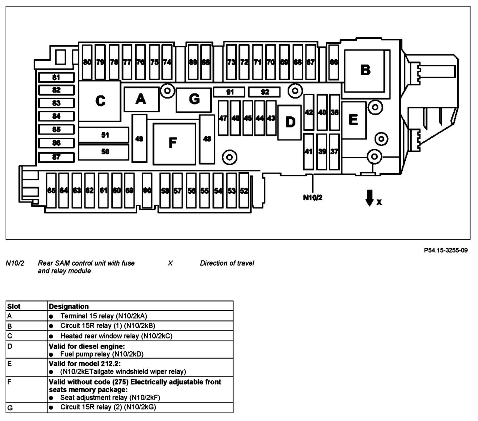 GF54.15-P-1257-04CA Relay Assignment of Fuse and Relay Box In Trunk