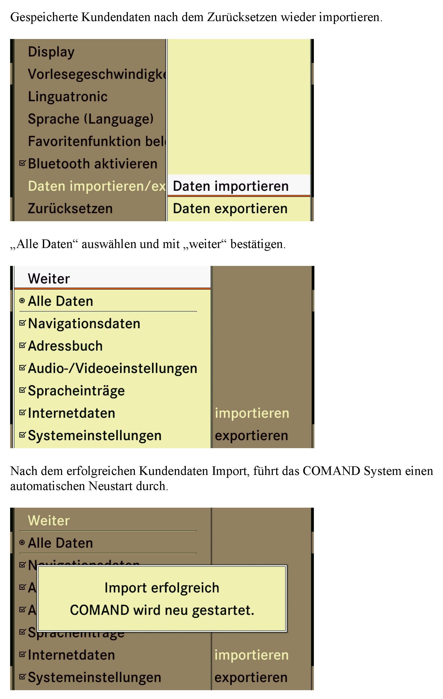 Kundendaten Reset am COMAND Online (NTG4.5)