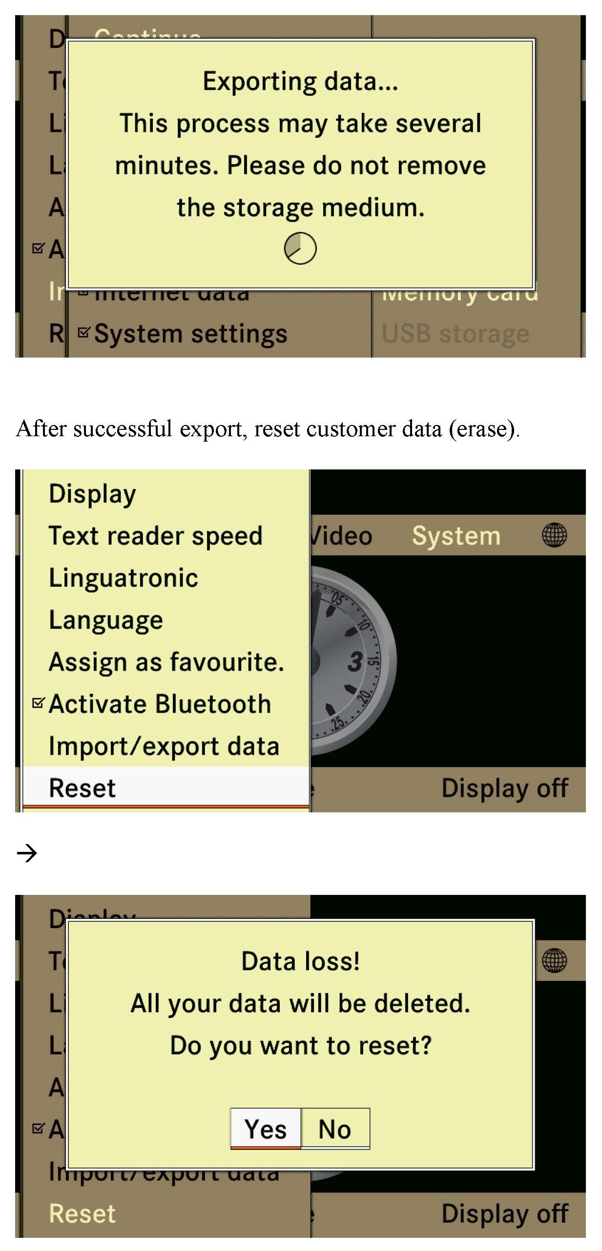 3. Perform a reset of the customer's data (important: all the customers data, such as navigation destinations, address book entries etc. will be lost)