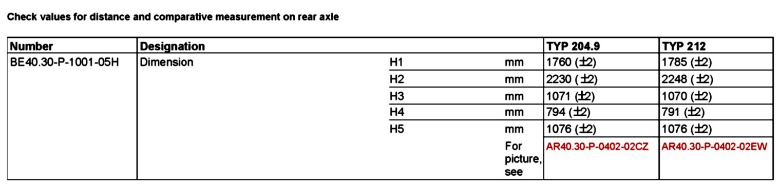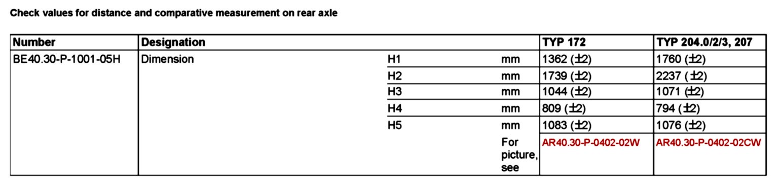 BE40.30-P-1000-05H Test values for distance and comparison measurements on rear axle