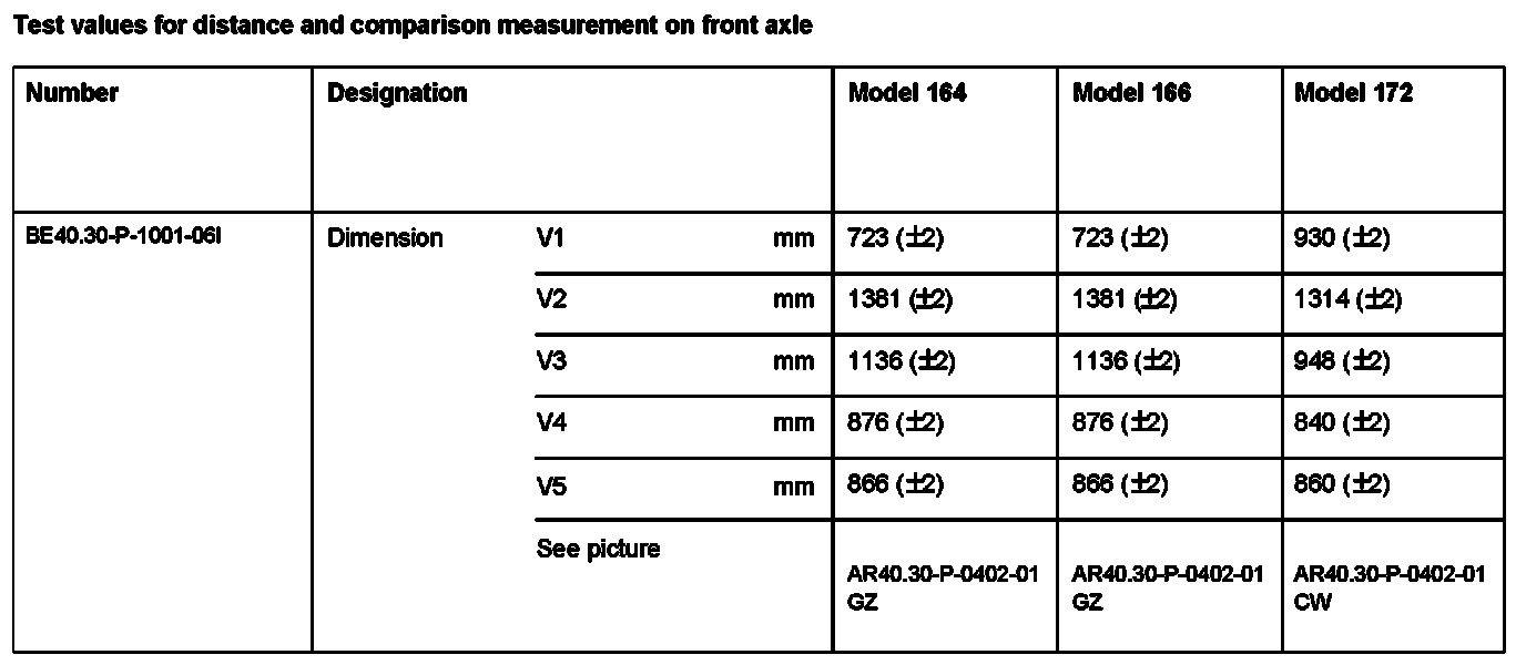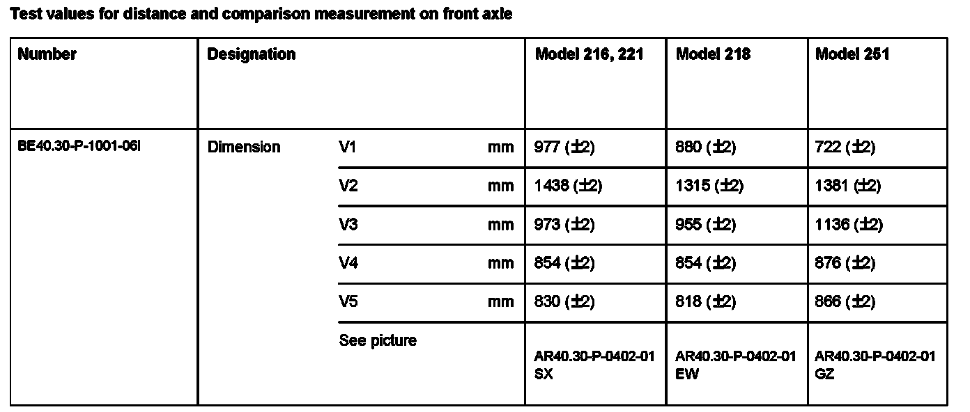 BE40.30-P-1000-06I Test values for distance and comparison measurement on front axle