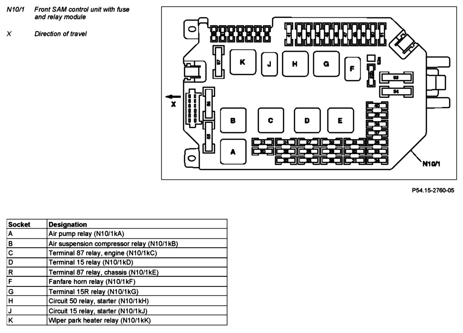 GF54.15-P-1257-03LE Relay Assignment of Fuse and Relay Box In Left Engine Compartment