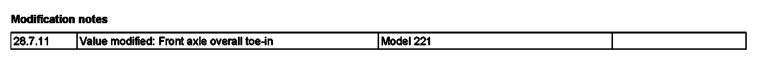 Front axle toe check values: