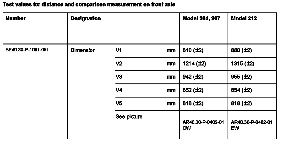 BE40.30-P-1000-06I Test values for distance and comparison measurement on front axle
