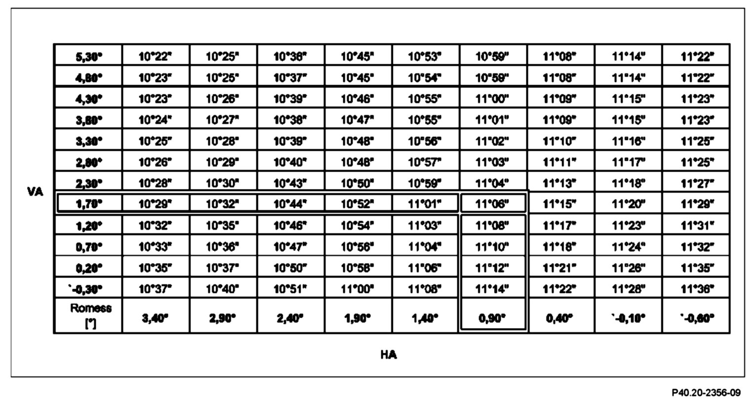 Rear axle level value (RA): +0.90°
