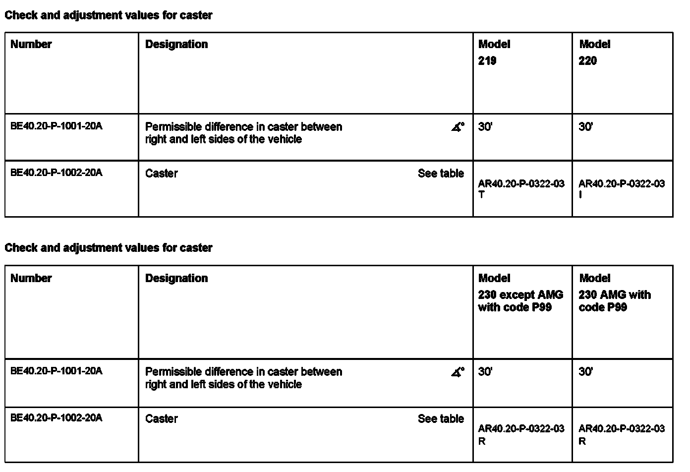 Check And Adjustment Values For Caster:
