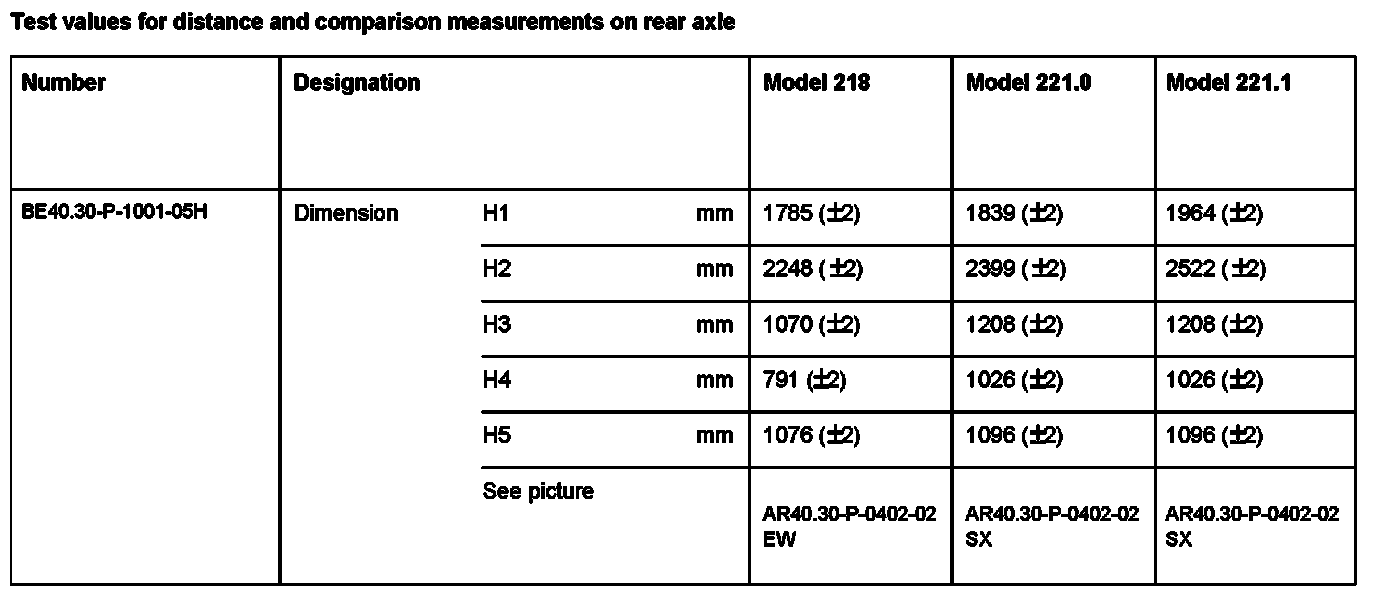 BE40.30-P-1000-05H Test values for distance and comparison measurements on rear axle