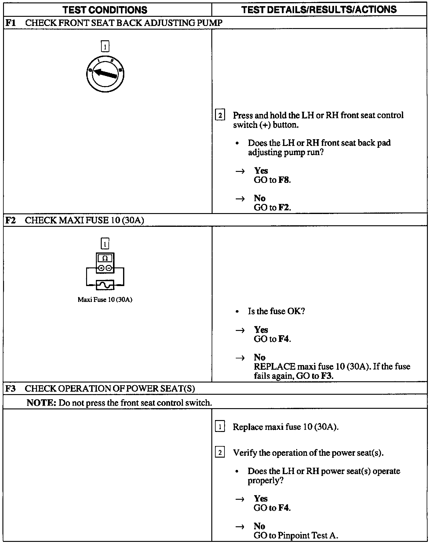 Test F: Power Lumbar Support Does Not Operate Properly