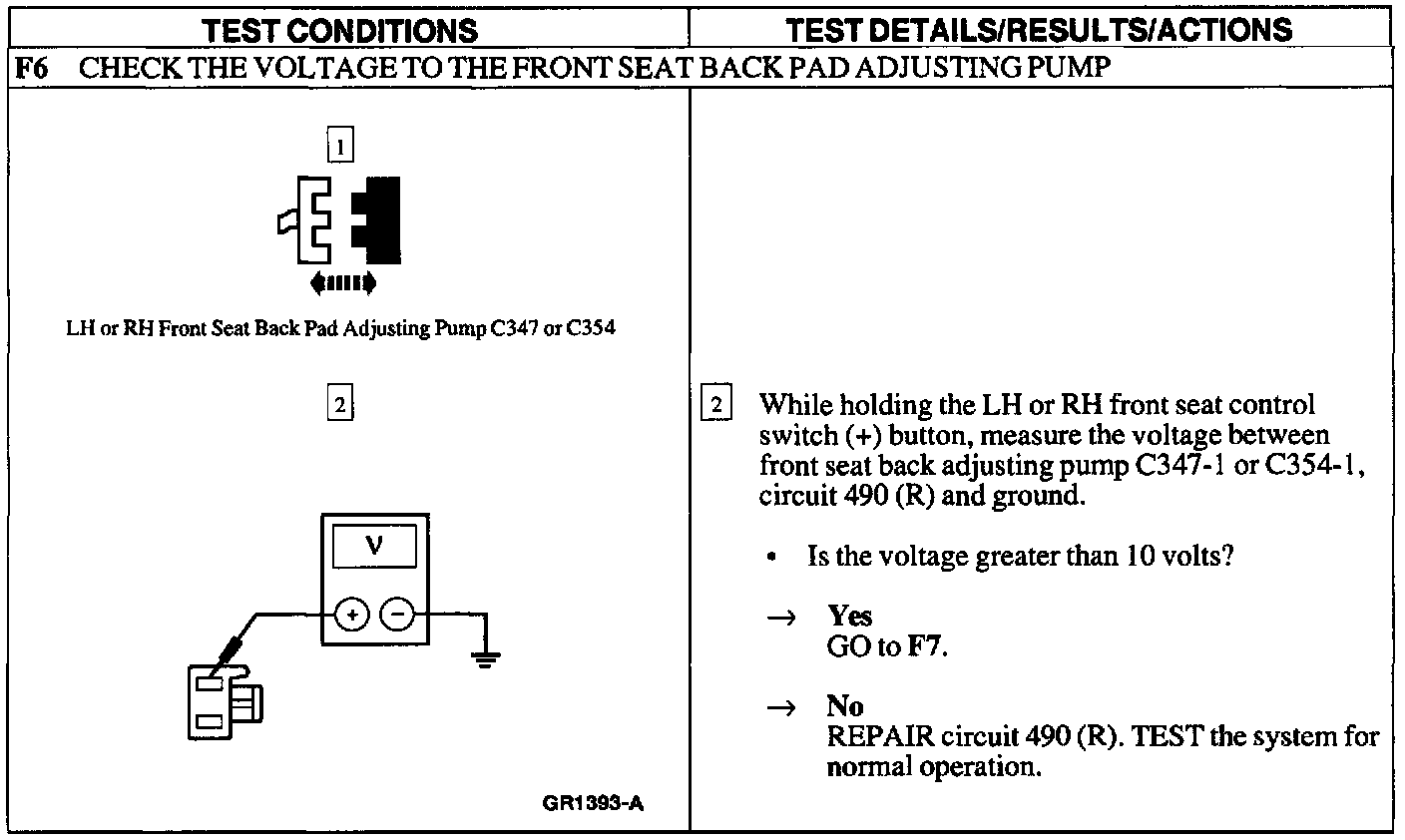 Test F: Power Lumbar Support Does Not Operate Properly