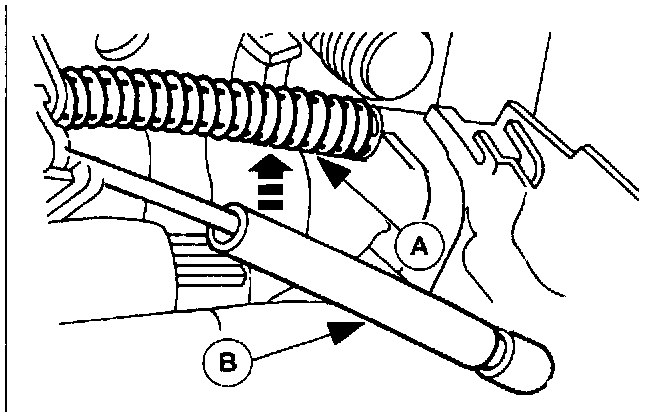 3. Separate the (A) accelerator cable from the (B) speed control actuator cable.