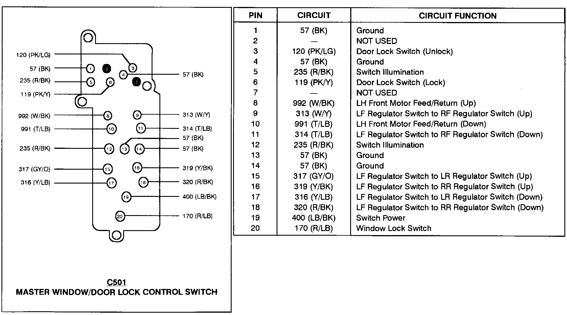 Master Window/door Lock Control Switch: