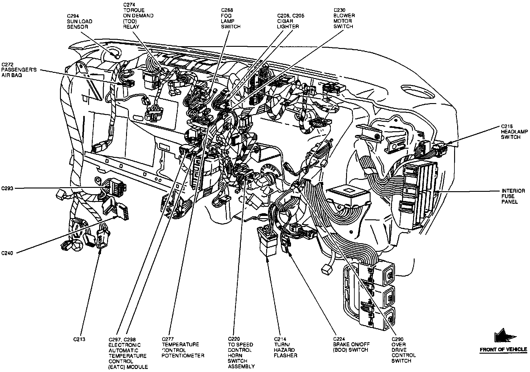 The Electronic Automatic Temperature Control Module is located at the center of the instrument panel.