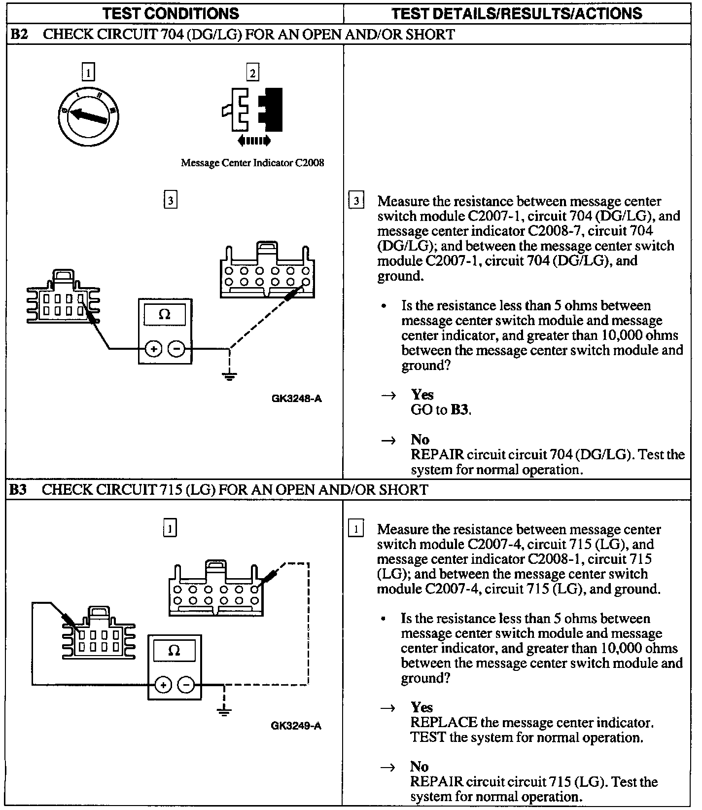 Pinpoint Test B: Message Center Module Not Operate Properly