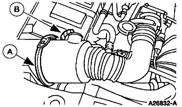 3. Separate the (A) engine air cleaner cover from the (B) engine air cleaner intake.