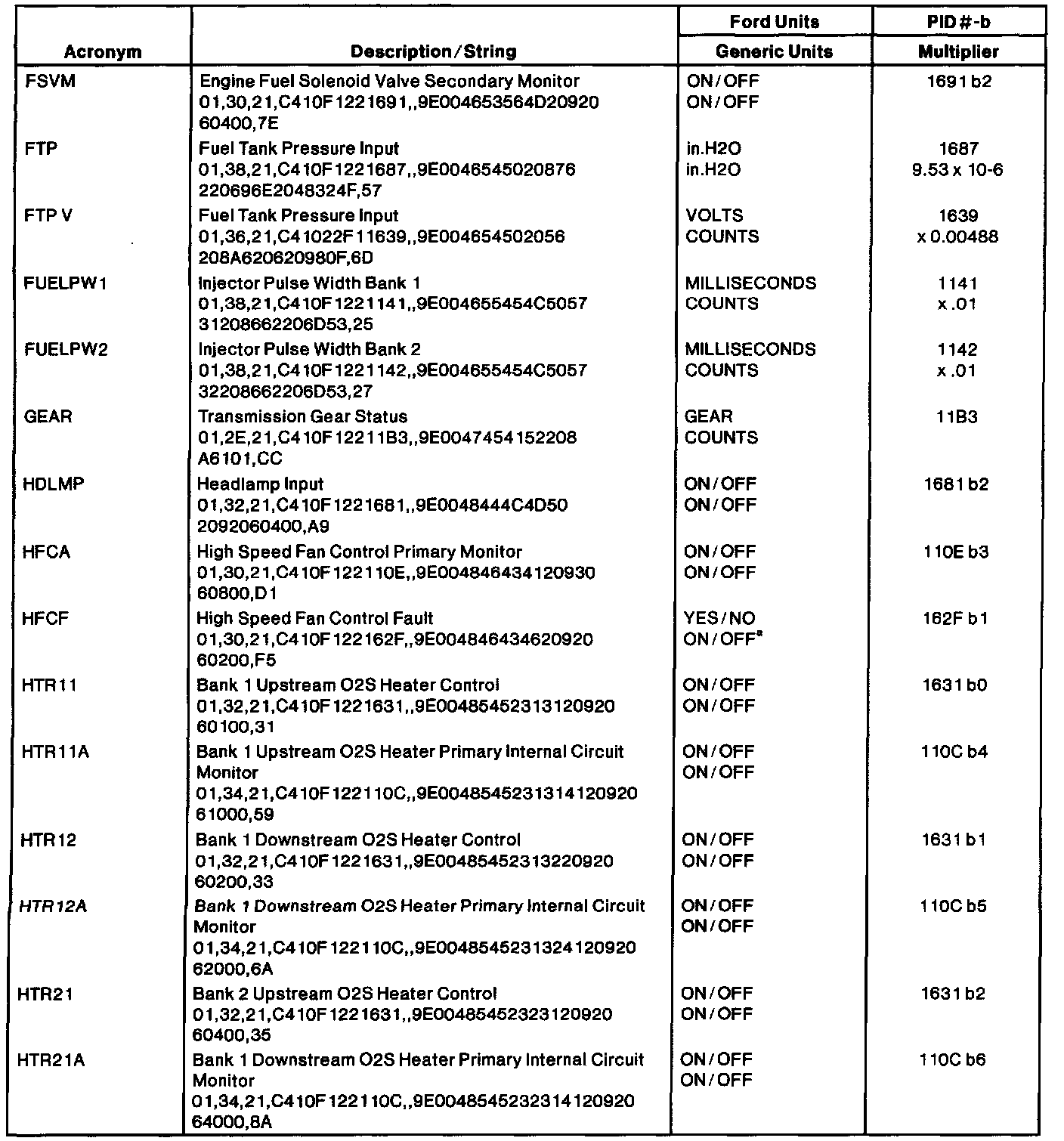 Ford PID List - Part 2 0f 7: