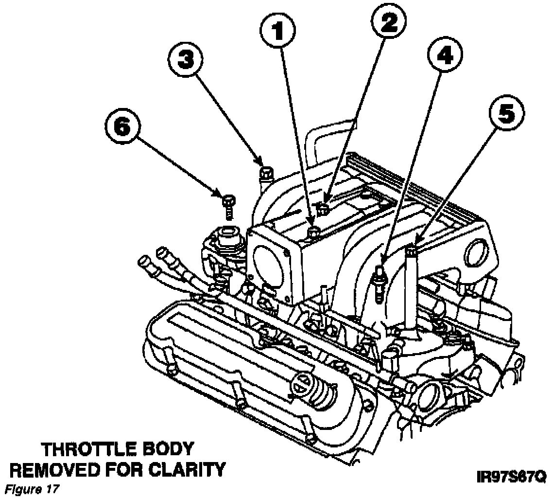 8. Install remaining intake manifold retaining bolts. See Figure 17 for proper tightening sequence. Tighten bolts to 16-25 Nm (12-18 lb/ft).