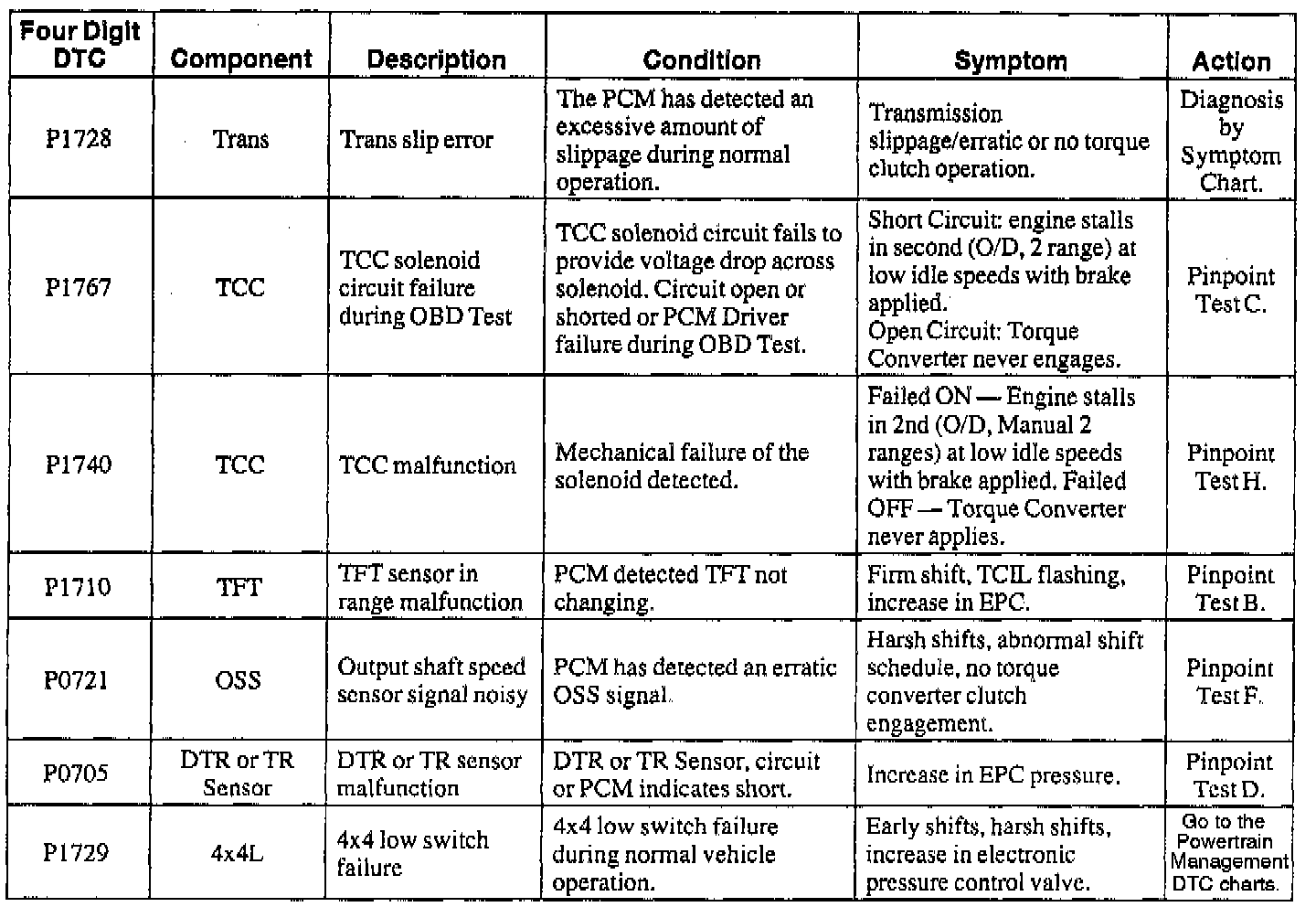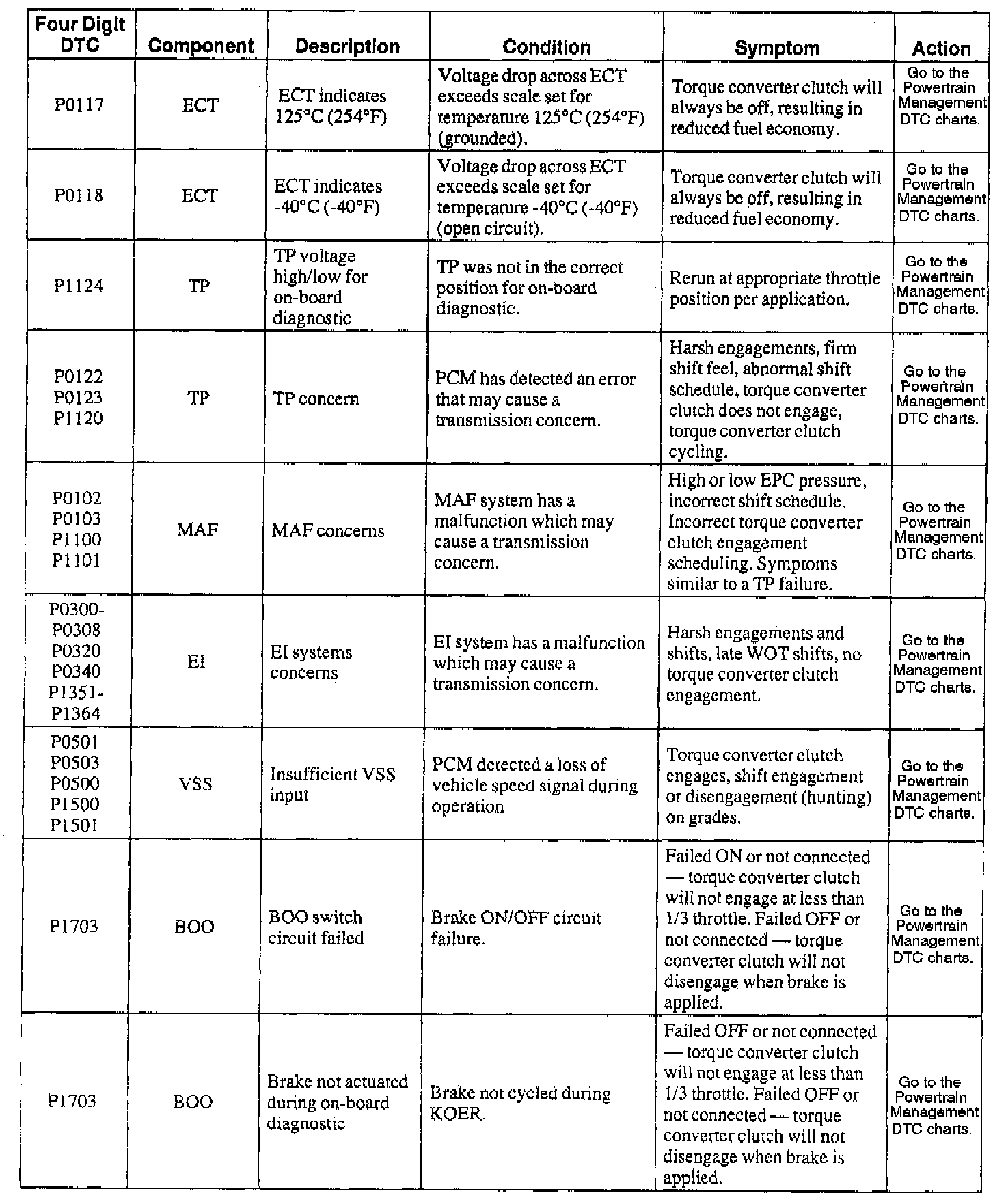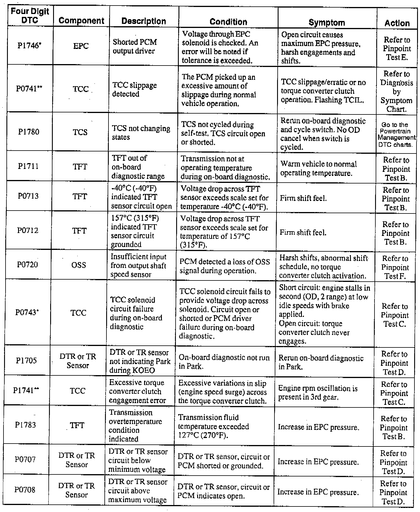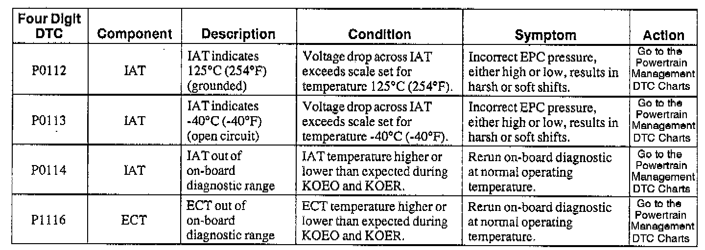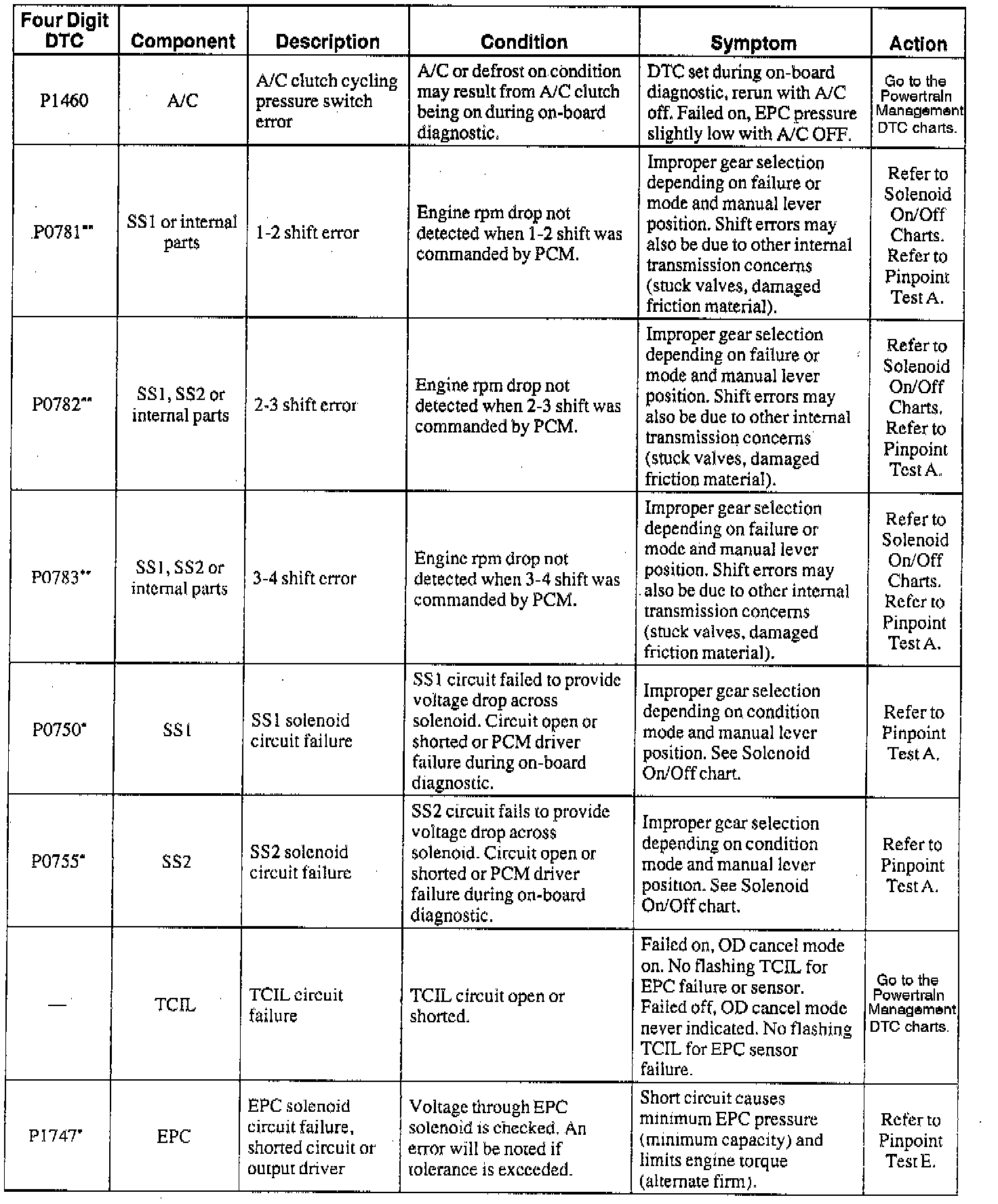 NOTE: When a DTC action contains a reference to Powertrain Management, go to the DTC index under Powertrain Management/Computers and Control Systems/System Diagnosis and follow the pinpoint test instructions for that DTC. Testing and Inspection