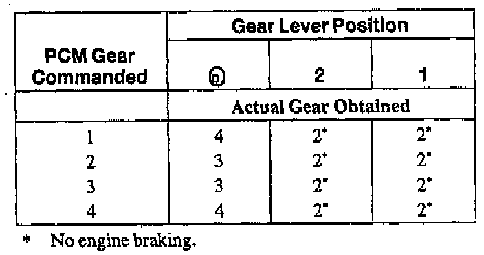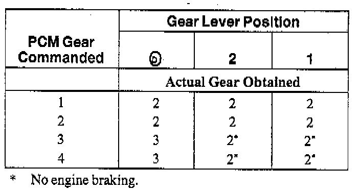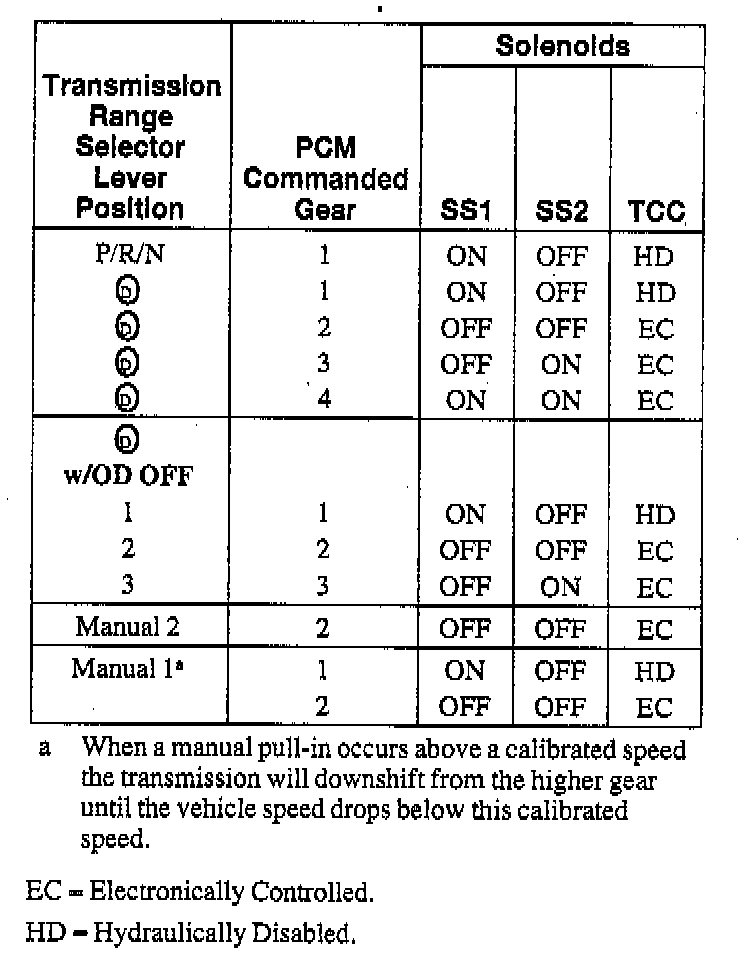 Shift Solenoid Operation Chart