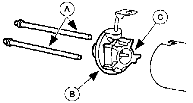 10. Lubricate the (A) starter drive bore. Install the (B) starter drive assembly and the (C) seal.