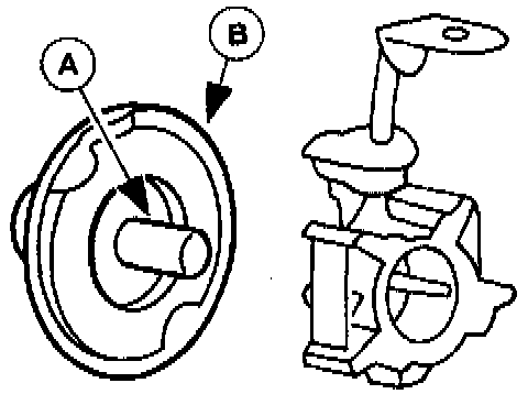 8. Connect the (A) drive lever and pin to the (B) starter drive.
