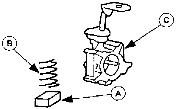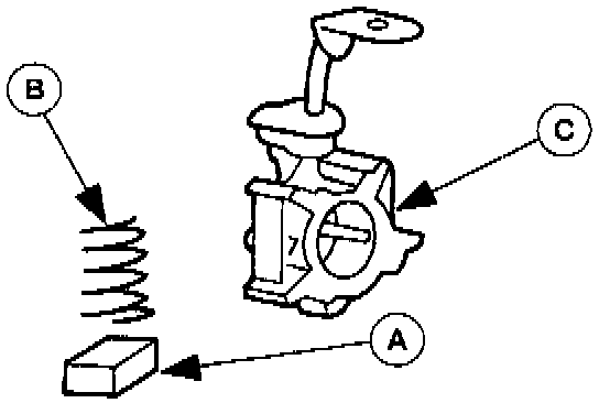 20. Inspect the (A) brushes for length and the (B) brush springs for proper tension. Make sure that the brushes slide easily in the (C) brush holder.