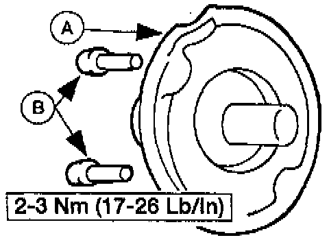 5. Position the (A) brush end plate and bushing and install the two (B) brush plate bolts.