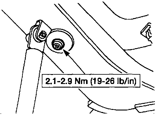 1. Remove the two liftgate window glass to window hinge screws.