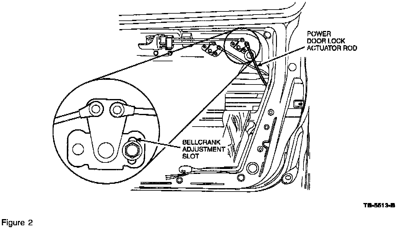4. On both front doors, adjust the lock rod linkage bellcrank to the middle of the adjustment slot (Figure 2).