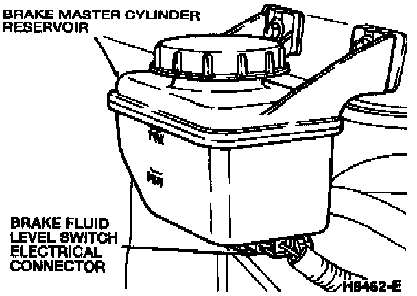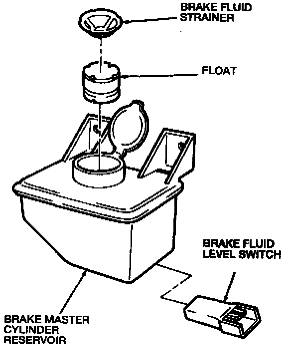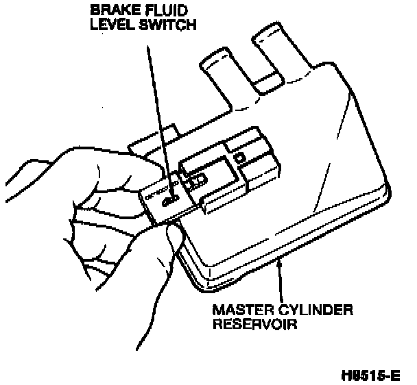 NOTE: It is not necessary to remove the brake master cylinder reservoir to remove the brake fluid level switch. The brake master cylinder reservoir is shown removed for illustration clarity.