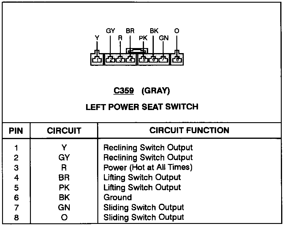 Left Power Seat Switch: